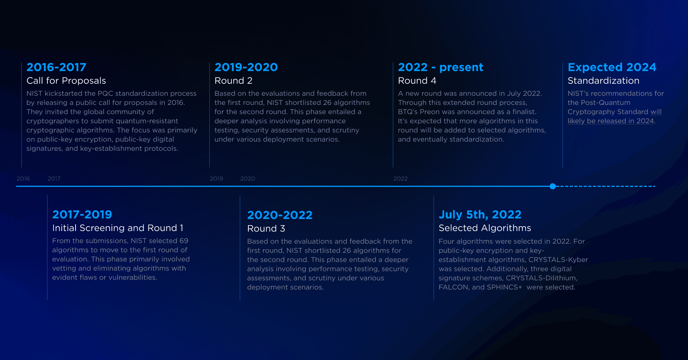 Timeline of the Post-Quantum Cryptography Standardization Process: